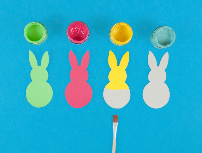 Verf de konijntjes in verschillende kleuren en laat ze drogen.