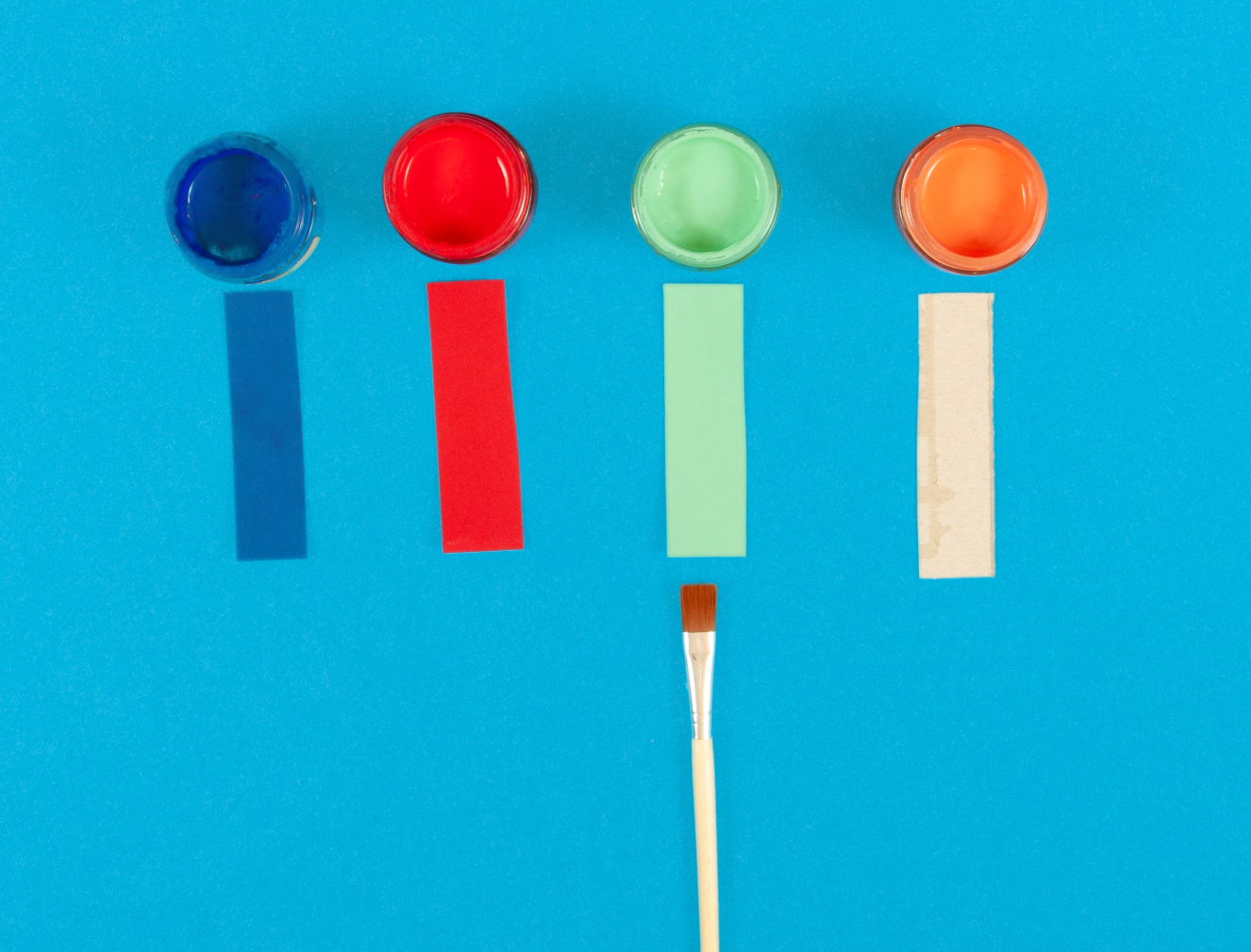Leg de laatste hand aan deze activiteit om de fijne motoriek te stimuleren door fiches te maken van overgebleven stukjes karton van de tissuedoos. Verf ze met de verschillende kleuren verf.